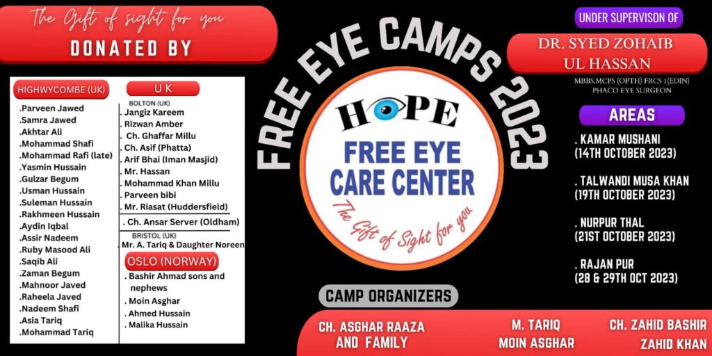 Recognising these devastating realities, we—myself(Zahid Khan) and Dr. Syed Zohaib-ul-Hassan—began this initiative as a humble effort with support from close friends and family. Over the past four years, through tireless commitment and compassion, we have grown into a structured network of generous donors and volunteers. Together, we have restored vision and transformed lives.